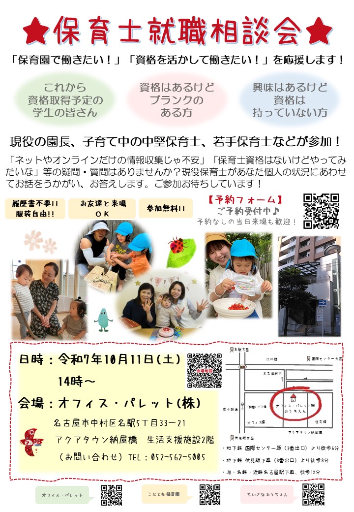 保育園の見学も随時受け付けております。 オフィス・パレット株式会社 もしくは『こととも保育園』『ちいさなおうちえん』各園へお気軽にお問い合わせください。
